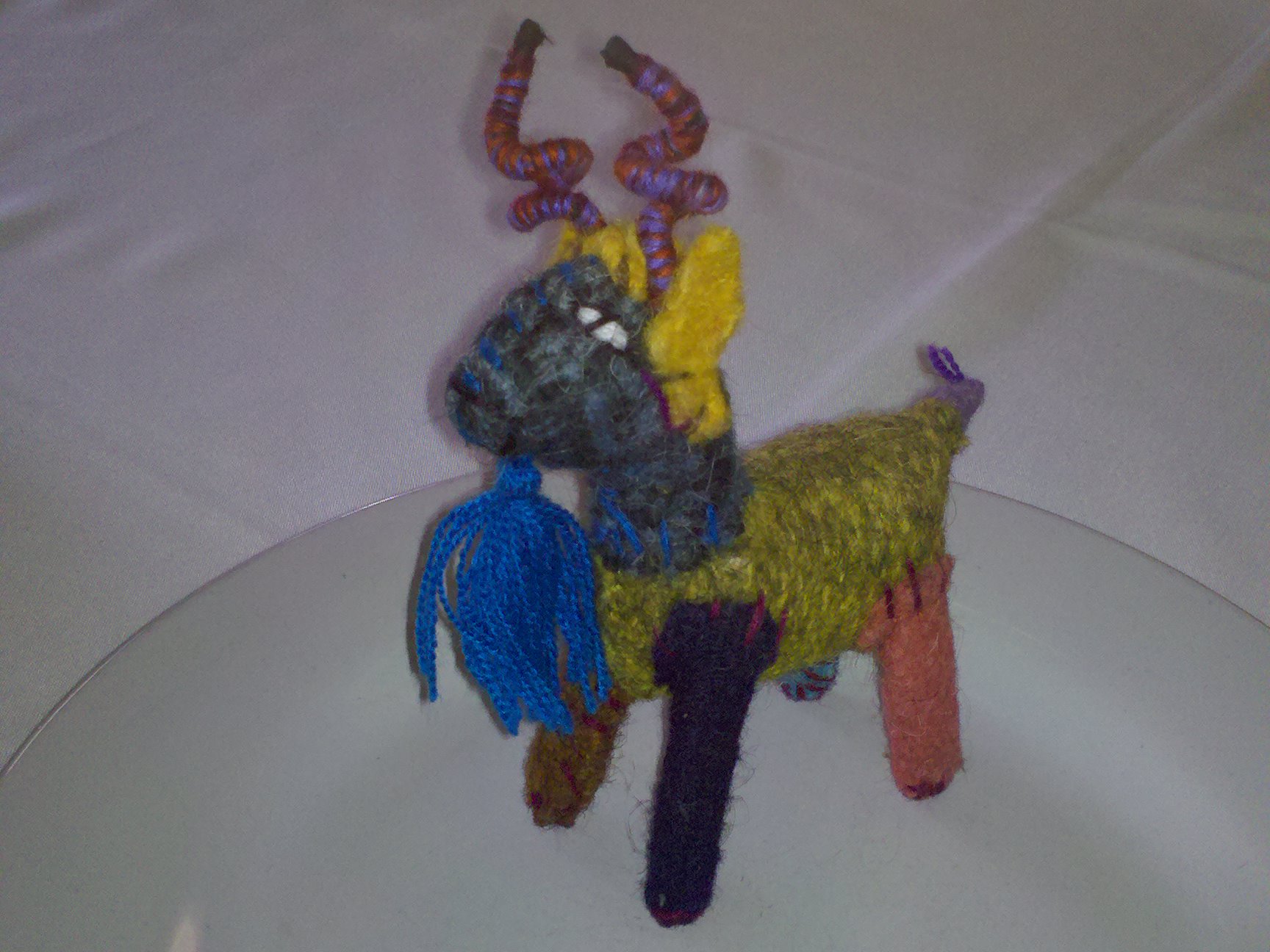 Toy goat made of wool yarn in Mexico